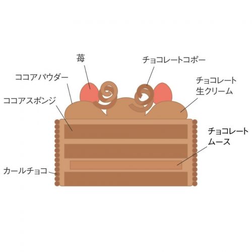 ココアスポンジにムースショコラをサンドし、フレッシュチョコレート生クリームで仕上げました。