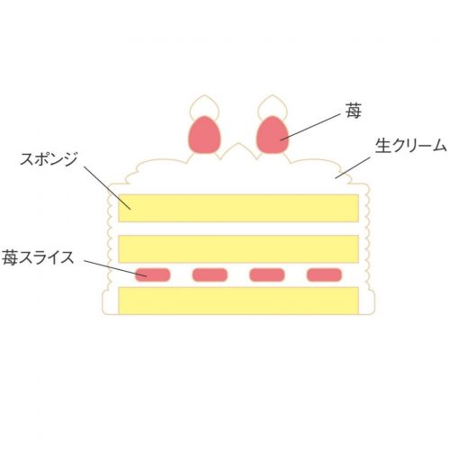 ふわふわ、しっとりとした卵黄の多く入ったスポンジに、なめらかなフレッシュ生クリームと苺で仕上げました。