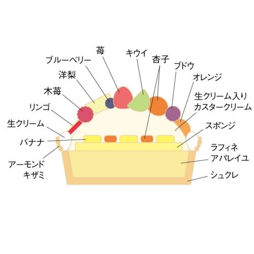 フランス風サワークリームを使用したサクッとした食感のタルト生地に、生クリーム・カスタードクリーム・季節のフルーツを乗せました。