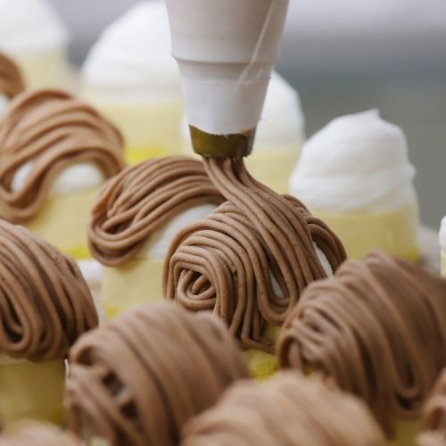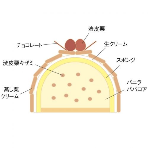 渋皮栗の刻みが入ったバニラのババロアを、生クリームと蒸し栗ペーストで仕上げました。