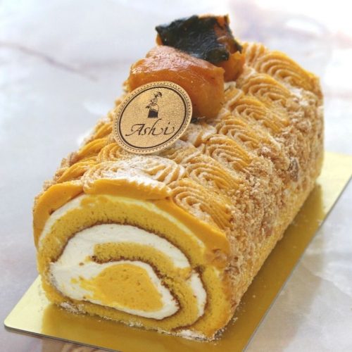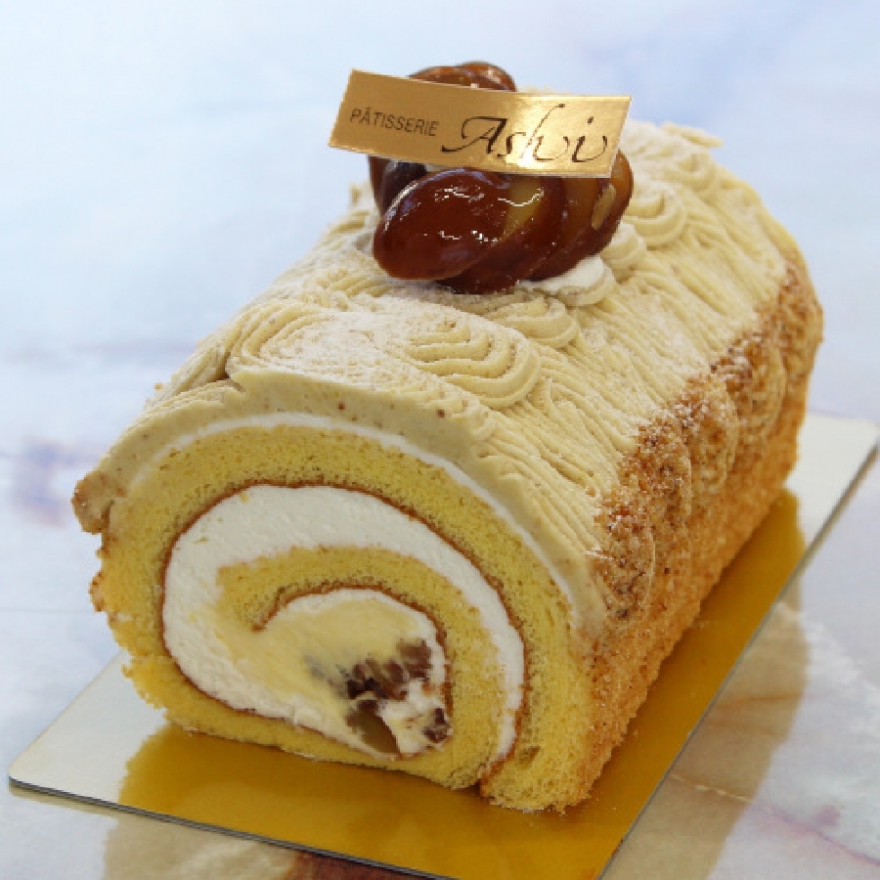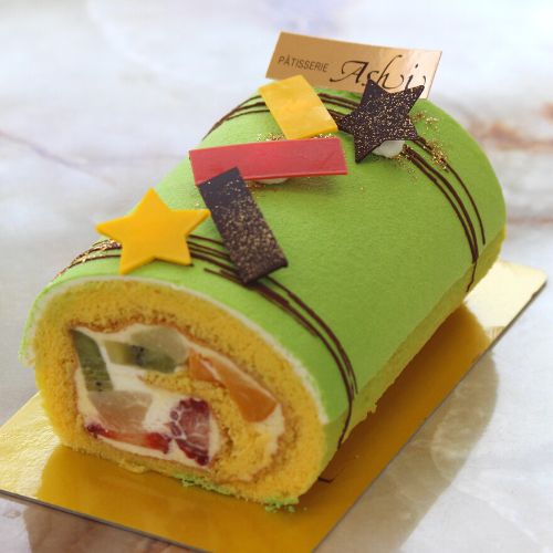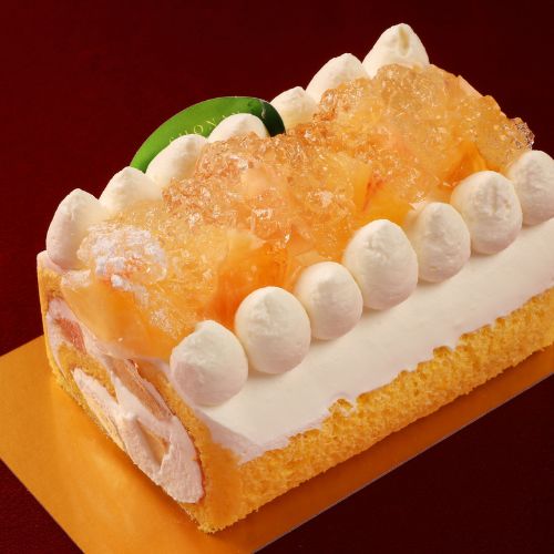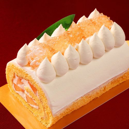 アーモンドの粉の入ったふわふわ食感の生地に、季節のフルーツをたっぷり使用したロールケーキ。