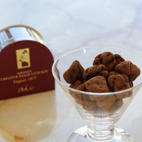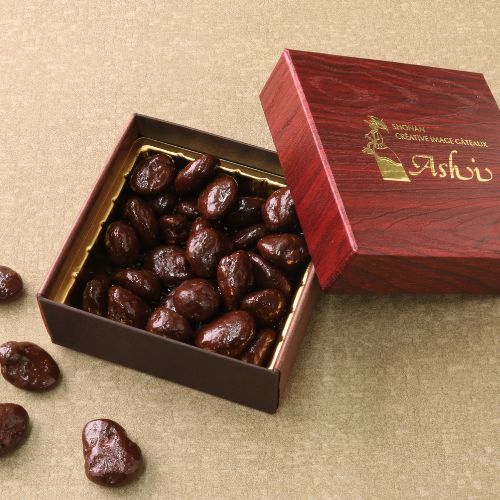 アーモンドキザミ入りのチョコレートでコーティングして仕上げました。