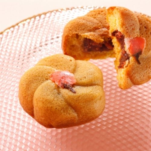 発酵バターを使用した桜葉パウダー入りマドレーヌ生地に、小豆を入れて焼き上げました。