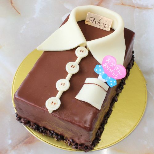 ホワイトチョコレートで襟・ボタン・ポケットを作り、ワイシャツ風に仕上げた父の日限定ケーキです。