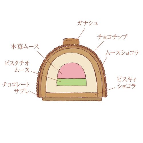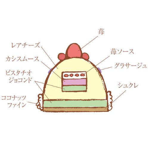 苺ムース&バニラのWムースを、ふんわり軽い食感のビスキュイで包みました。