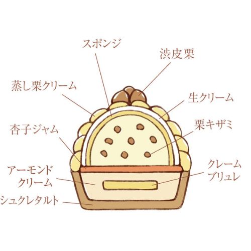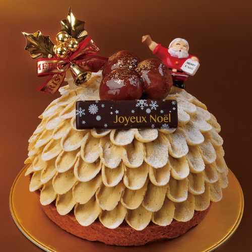 クリームブリュレ入りアーモンドクリームのタルトにババロアをのせ、蒸し栗クリームをふんだんに絞ったクリスマス限定モンブラン。